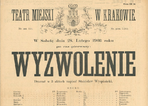 Wyspiański powraca, znów i jeszcze raz, właśnie z „Wyzwoleniem”. Zrobił je dwa lata temu Jan Klata w Teatrze Wybrzeże, na otwarcie nowej dużej sceny, ponoć w estetyce butoh, i w klimacie skrajnego pesymizmu (nie widziałem, spektakl do obejrzenia wyłącznie w Gdańsku). Natomiast udało mi sie zapoznać z bombastycznym tytułem „Zamach na Narodowy Stary Teatr. Narodziny narodu” w reżyserii Jakuba Skrzywanka, na tegorocznym festiwalu Boska Komedia. Ten spektakl rozpoczyna się właśnie krótkim fragmentem zrobionym ze scen pierwszego aktu „Wyzwolenia”. Ważne jest jednak co innego – że krytycznie analizuje ten dramat (o czym dalej) jako wzorzec scenariusza-archetypu dla polskiej wspólnoty, czymkolwiek ona dziś jest. Jakby tego było mało, w ostatnich dniach inny krakowski potentat, Teatr im. Słowackiego, zapowiedział, że do „Wyzwolenia” przystępuje u nich Maja Kleczewska. Znając prace Kleczewskiej ze „Słowaka” (w tym ostatnie „Wesele”), będzie to też dekonstrukcja i demaskacja późnej polskości z użyciem liter Wyspiańskiego. Jako autor najlepszy dla ludzi teatru, bo nieżywy, nie ma szans na obronę przed interpretacyjnym gwałtem.