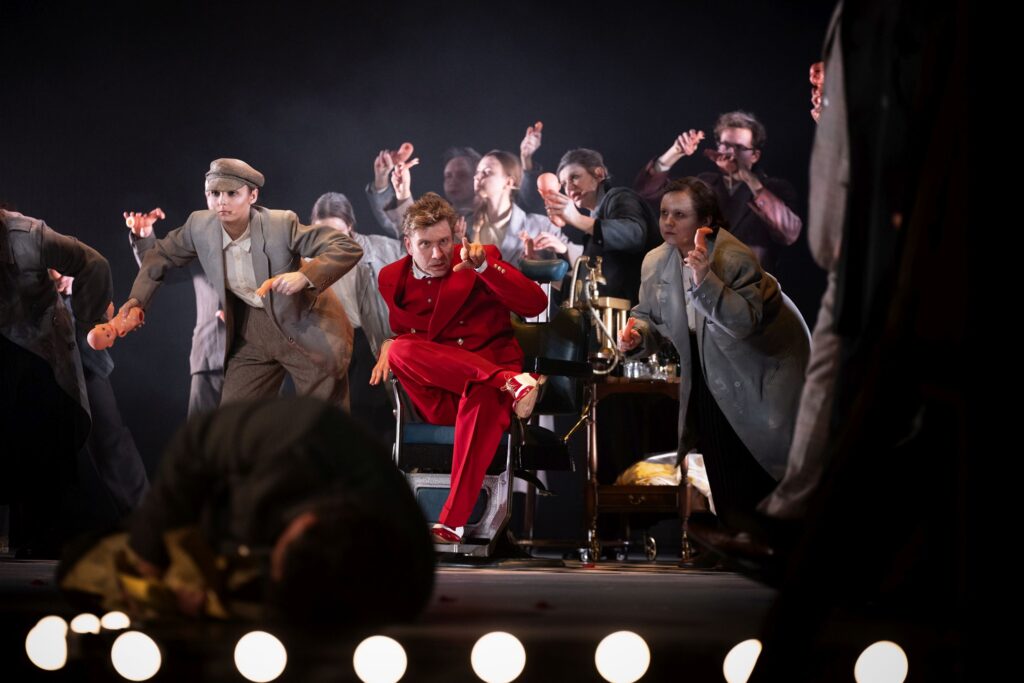 Osobliwy to zatem wybór tematu i materiału na spektakl z piosenkami. To przedsięwzięcie miało sporo szans, aby nie wypalić. Stało się inaczej. Zaskakująco świetnie sprawdzają się na scenie wiersze – medium piosenki otworzyło je i uczytelniło. Kompozycje Piotra Bańki są nieźle zaśpiewane przez aktorów teatru i przez specjalnie do spektaklu zgromadzony, wieloosobowy chór. Nie brakuje też tu inscenizacyjnych atrakcji i niespodzianek, zmian akcji i nastrojów. Przewija się plejada rzeczywistych postaci międzywojennego Lublina, historia przenika się z dzisiaj, salon fryzjerski ze szpitalem psychiatrycznym (gdzie trafił ojciec artysty), a potem z „kliniką lalek” z wiersza i bajkowymi wizjami jak z Tima Burtona. Jednak spektakl spoczywa głównie na barkach Wojtka Rusina, w podwójnej roli Józefa/Henryka. Całość prowadzą jego niespokojna energia i szydercza ekspresja. Rusin potrafi być i groteskowy, i delikatny. Postać Henryka w czerwonym garniturze, jeszcze jedna emanacja Jokera, jest skontrastowana z wrażliwą osobowością i talentem artysty. Ten zagadkowy, nieobecny facet w przekrzywionym krawacie – komuś się w końcu udało ukazać Czechowicza bez popadania w klisze. A Henryk – konferansjer-doppelgänger – no cóż, dużo gada i robi wokół siebie zamieszanie, ale to tylko efektowna figura narracyjna… Najmocniejsze sekundy spektaklu należą – nie jest to zresztą komplement dla twórców teatralnych – do medium filmowego. Znakomite sekwencje filmowe najpełniej oddają zwodniczą moc wyobraźni poetyckiej, pokazują równoległą przestrzeń, w której Czechowicz przebywał i która uniemożliwiała mu normalne życie. Jednak dobra poezja wymyka się prostym odpowiedziom. W finale Henryk okazuje się najmniej ciekawy, a dwoistość rozpada się na znacznie więcej aspektów, być może i na 22.