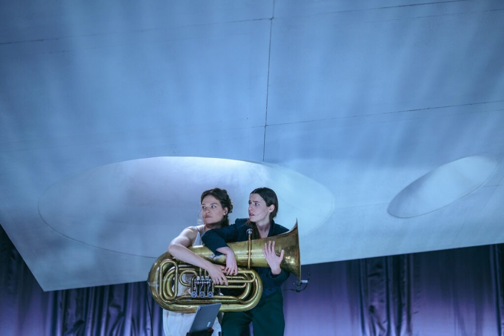 Drogę do celu wskazała już sama decyzja zrealizowania „Antygony…” jako dramatu muzycznego na kameralnej scenie. W trudnych do odgadnięcia proporcjach na mocny efekt złożyły się tu zapewne praca reżyserki, kompozytora Jana Duszyńskiego, odtwórczyni głównej roli Marianny Linde oraz Maniuchy Bikont, aktorki i zarazem instrumentalistki wykonującej na żywo część muzycznej partytury. Pod abstrakcyjną scenografią stworzoną z białego, ukośnie zawieszonego elementu, sufitu ograniczającego przestrzeń, odbywa się ta godzinna gra. Kwestie wypowiadane są bardziej „na biało”, bez nadmiernych emocji i wcielania się w rolę. Czasem są melorecytowane, czasem niespodziewanie brzmi piękny, czysty śpiew obu aktorek (którym towarzyszy jako narrator i epizodysta Michał Sikorski). Muzyka wprowadza dystans, tworzy świat autonomiczny, który niczego nie naśladuje, bez scenek, obrazków rodzajowych, realizmu. Tego rodzaju dzieło można sobie wyobrazić także jako audycję muzyczną, stworzoną z samej tylko audiosfery. Powstała mała, zwarta, treściwa forma, dla której luźną inspiracją była być może stylistyka japońskiego teatru nō. Dzięki temu spektakl wchodzi, ma swoją własną prawdę, uwalniającą się od poglądów i intencji twórców, od otoczki ideologicznej. Pasuje ona do surowej formy dramatu, do behawiorystycznego, relacyjnego trybu snutej tu opowieści – przezroczystej, wypranej z introspekcji, unikającej wchodzenia w doświadczenie wewnętrzne.